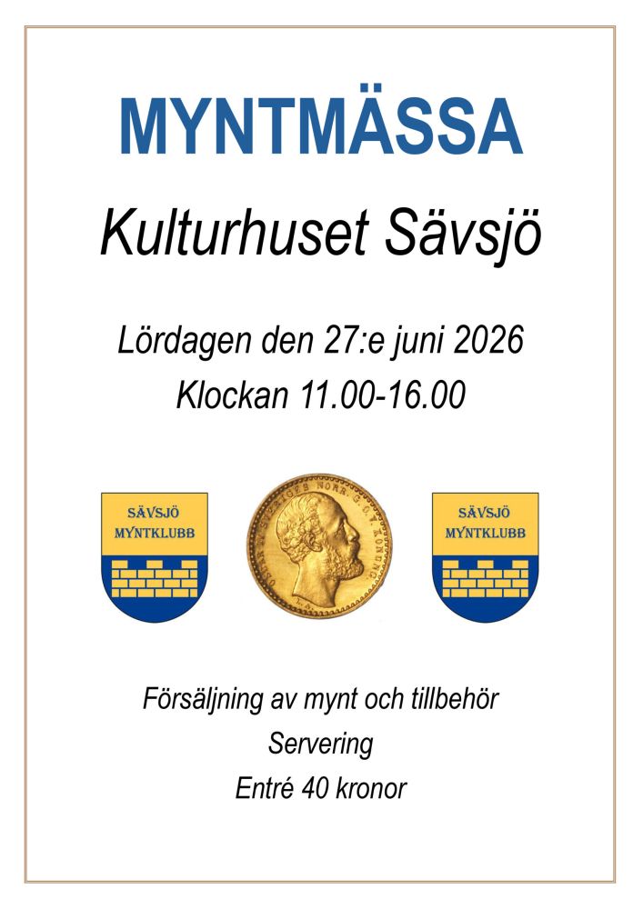 Sävsjö Myntklubb hälsar dig välkommen till Kulturhuset Sävsjö.