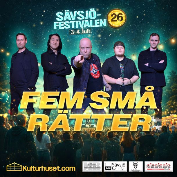 Fem Små Rätter är ett Sävsjöbaserat coverband som snabbt blivit ett uppskattat inslag på den lokala livescenen. Med fem rutinerade musiker på scen levererar de konserter där spelglädjen står i centrum och publiken alltid dras med.